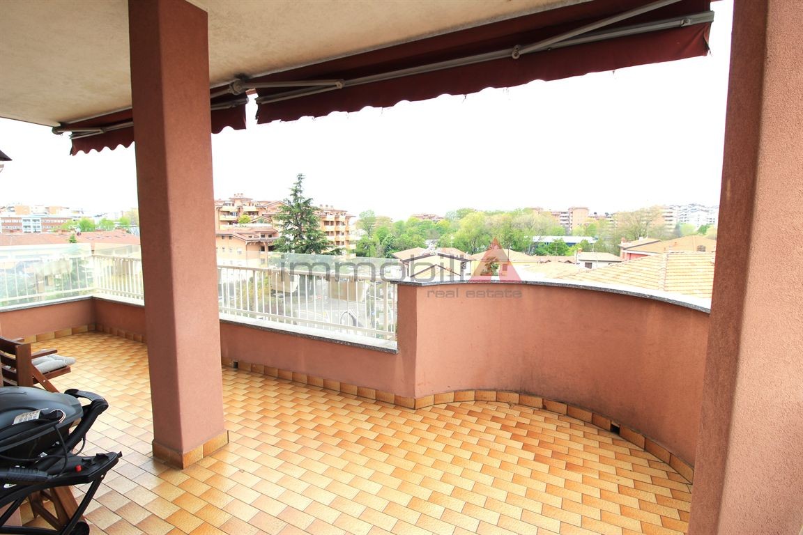 Segrate. In zona centrale proponiamo stupendo e luminoso appartamento di 135mq posto al quarto ed ultimo piano, completamente ristrutturato e rifinito con gres porcellanato. L'immobile è così composto: ingresso con ripostiglio/guardaroba; spazioso soggiorno doppio con accesso all'ampio terrazzo loggiato e vivibile; area cucina con penisola pranzo dotata di piano a induzione, forno e microonde a incasso, lavastoviglie ed accesso alla veranda con lavanderia; disimpegno notte con doppi servizi finestrati con vasca e doccia, sanitari sospesi e finemente arredati; due camere da letto con ulteriore balcone. Completamente arredato con mobilio di pregio. Serramenti nuovi in doppio vetro e dotati di zanzariere e tapparelle motorizzate. Interamente climatizzato Samsung con pompa di calore. Riscaldamento centralizzato con termo-valvole. Autorimessa singola € 100,00 mensili. Libero da Maggio 2026. Canone mensile € 1.750,00 oltre spese di gestione condominiale e consumi. SOLO REFERENZIATI