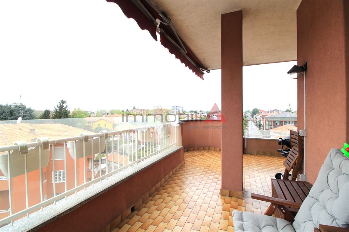 Segrate. In zona centrale proponiamo stupendo e luminoso appartamento di 135mq posto al quarto ed ultimo piano, completamente ristrutturato e rifinito con gres porcellanato. L'immobile è così composto: ingresso con ripostiglio/guardaroba; spazioso soggiorno doppio con accesso all'ampio terrazzo loggiato e vivibile; area cucina con penisola pranzo dotata di piano a induzione, forno e microonde a incasso, lavastoviglie ed accesso alla veranda con lavanderia; disimpegno notte con doppi servizi finestrati con vasca e doccia, sanitari sospesi e finemente arredati; due camere da letto con ulteriore balcone. Completamente arredato con mobilio di pregio. Serramenti nuovi in doppio vetro e dotati di zanzariere e tapparelle motorizzate. Interamente climatizzato Samsung con pompa di calore. Riscaldamento centralizzato con termo-valvole. Autorimessa singola € 100,00 mensili. Libero da Maggio 2026. Canone mensile € 1.750,00 oltre spese di gestione condominiale e consumi. SOLO REFERENZIATI